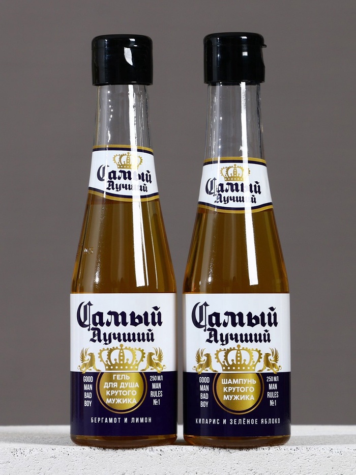 Подарочный набор «Экстра мужик», гель для душа и шампунь для волос пиво, 2×250 мл, Чистое счастье — Характеристики