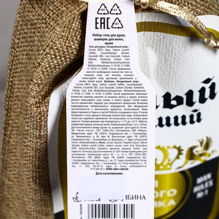 Подарочный набор «Экстра мужику», гель для душа и шампунь для волос пиво, 2×250 мл, мыло для рук 70 г, Чистое счастье — Характеристики