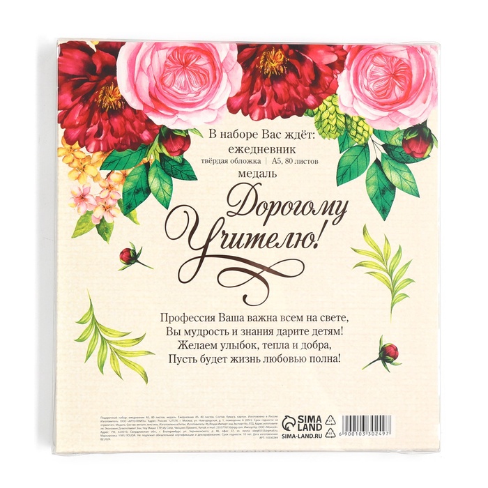 Подарочный набор, ежедневник А5, 80 л, медаль «Дорогому учителю» — Характеристики