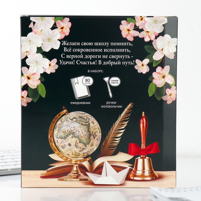 Подарочный набор, ежедневник А5, 80 л., ручка-колокольчик «Выпускной:Прощай, школа!» — Характеристики