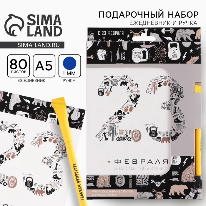 Подарочный набор, ежедневник А5, 80 листов и эко ручка «23 февраля» — Характеристики