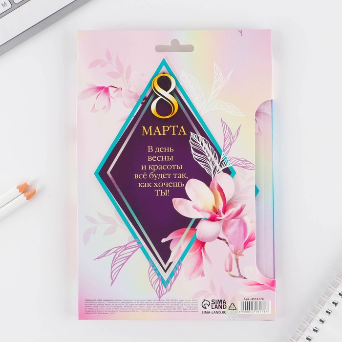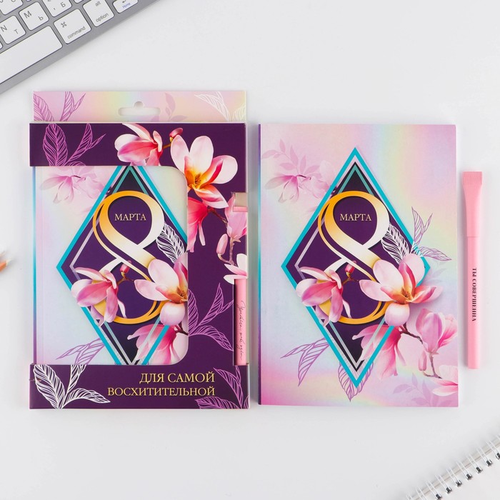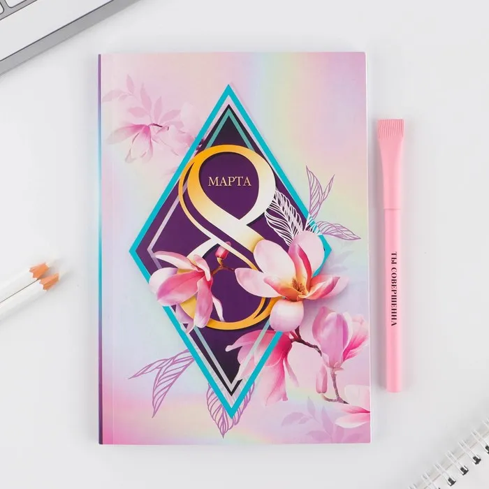 Подарочный набор, ежедневник А5, 80 листов и эко ручка «8 марта» — Характеристики