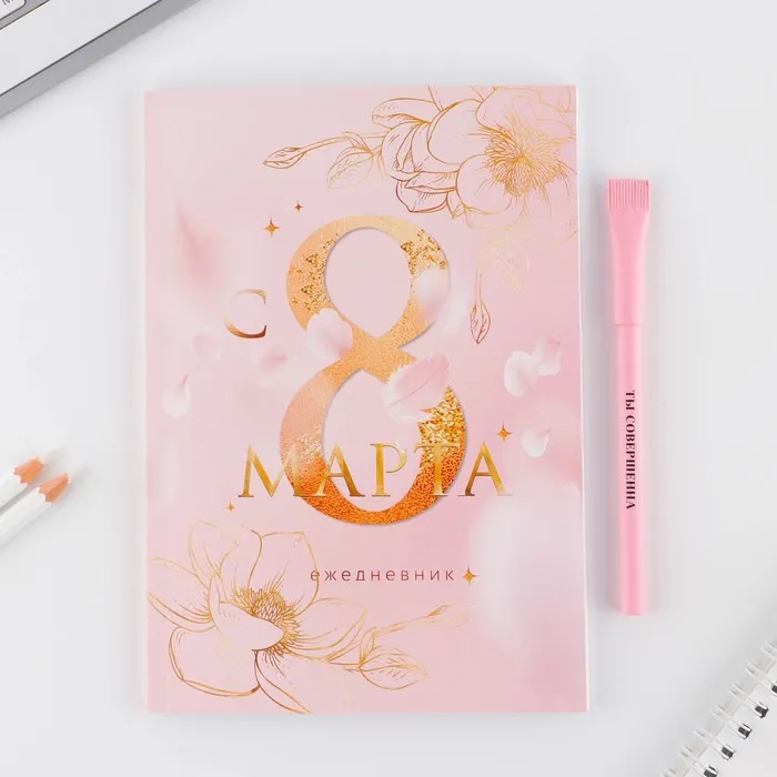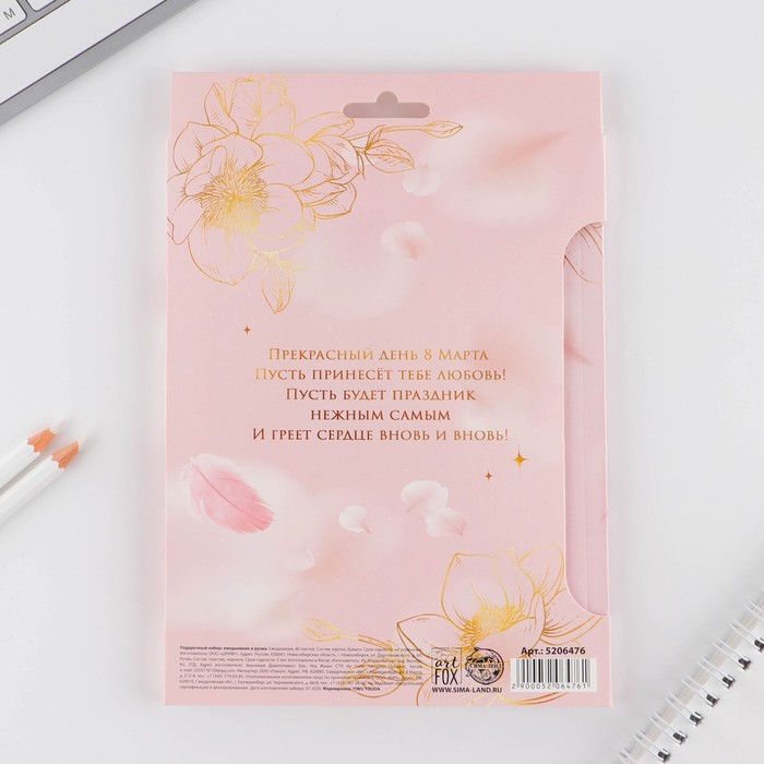 Подарочный набор, ежедневник А5, 80 листов и эко ручка «Самая нежная. С 8 Марта» — Характеристики