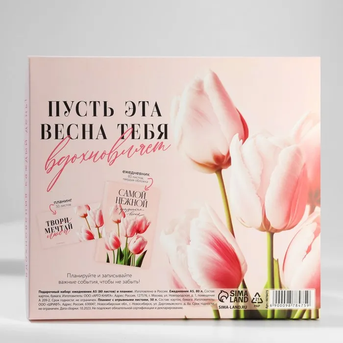 Подарочный набор, ежедневник А5, 80 листов и планер, 50 л. «Самой нежной» — Характеристики