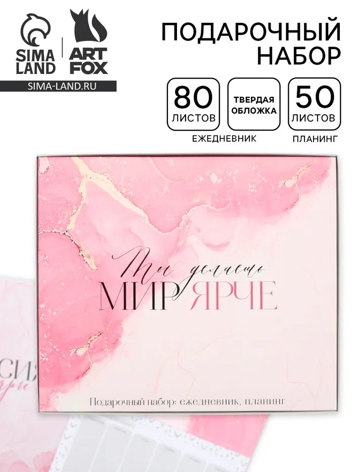 Подарочный набор, ежедневник А5, 80 листов и планер, 50 л. «Ты делаешь мир ярче» — Характеристики