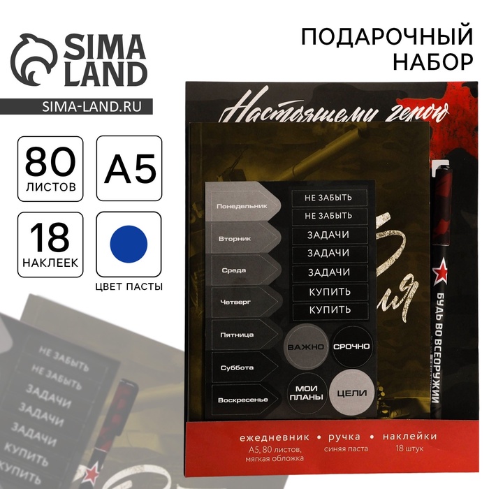 Подарочный набор, ежедневник А5, 80 листов, наклейки и ручка «С 23 февраля» — Характеристики