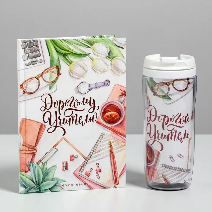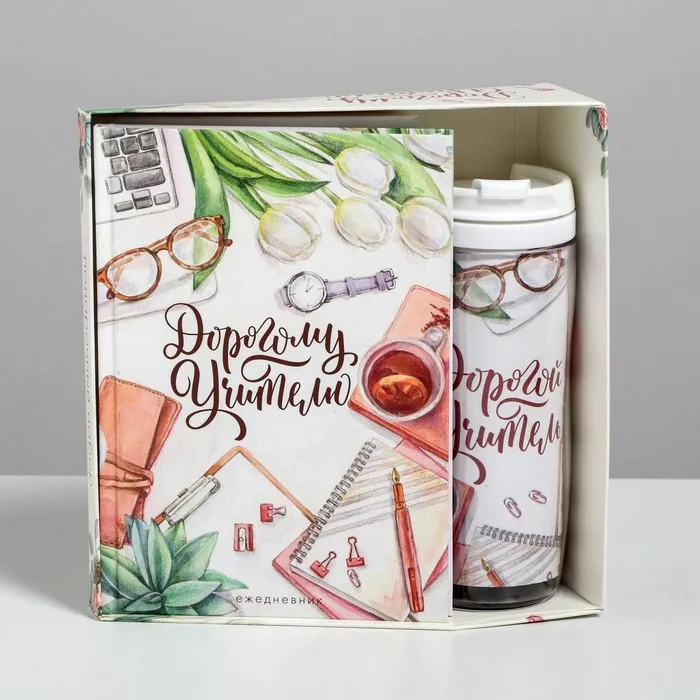 Подарочный набор, ежедневник А5, 80 листов, термостакан 350 мл «Дорогому учителю» — Характеристики