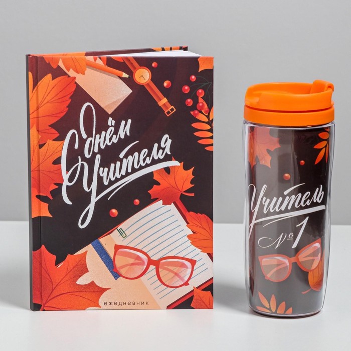 Подарочный набор, ежедневник А5, 80 листов, термостакан 350 мл «С днём учителя» — Характеристики
