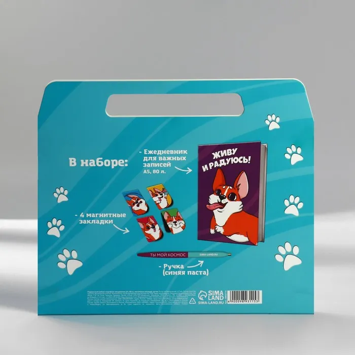 Подарочный набор, ежедневник А5, магнитные закладки и ручка «Для тех, у кого лапки» — Характеристики