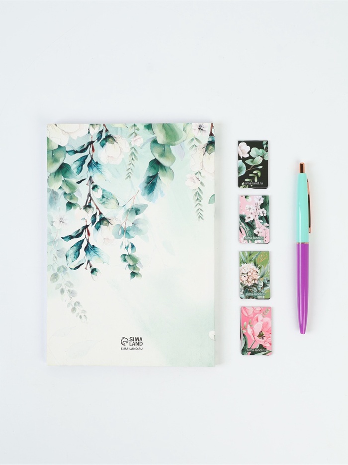 Подарочный набор, ежедневник А5, магнитные закладки, ручка «Расцветай от счастья» — Характеристики