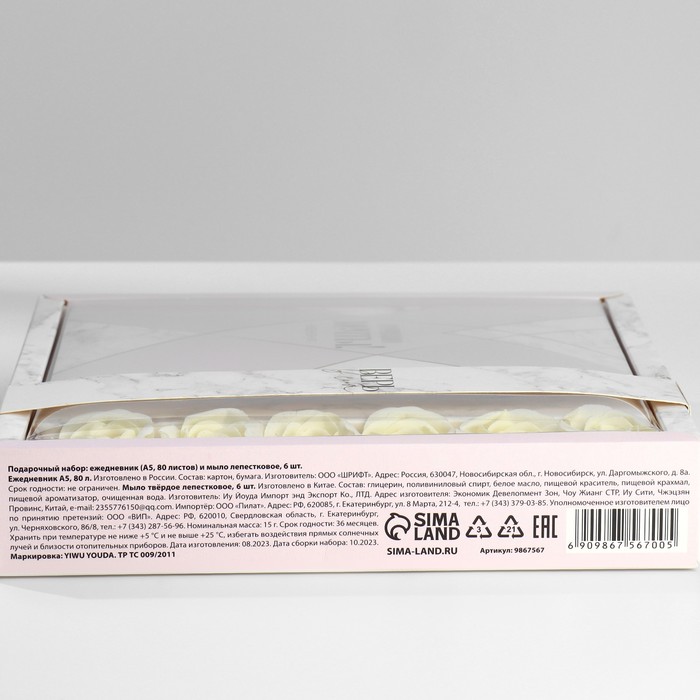 Подарочный набор ежедневник А5,80 листов и мыльные лепестки «Сочиняй мечты!» — Характеристики