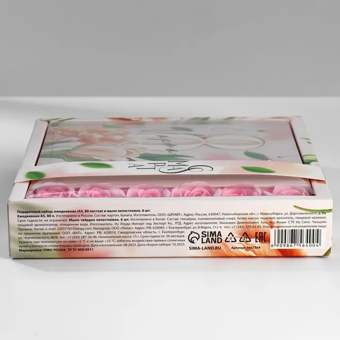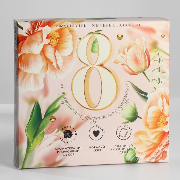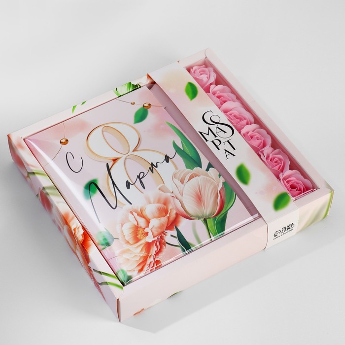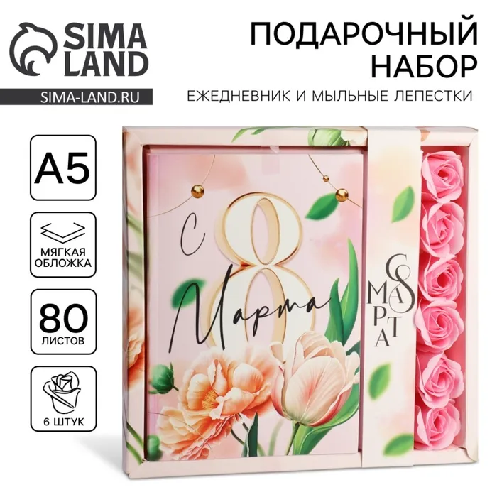 Подарочный набор: ежедневник А5,80 листов и мыльные лепестки «Тюльпаны 8 марта» — Характеристики