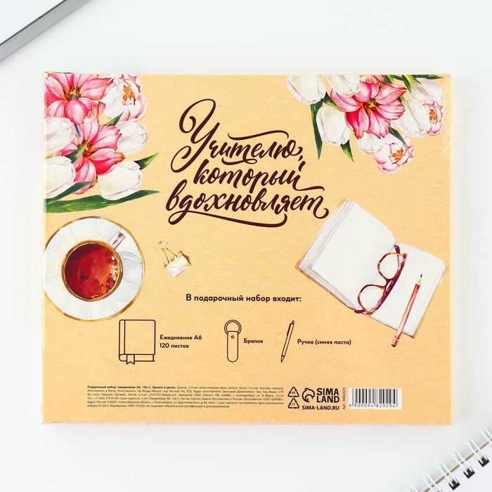 Подарочный набор, ежедневник А6, 120 л., брелок, ручка «Подарок дорогому учителю» — Характеристики