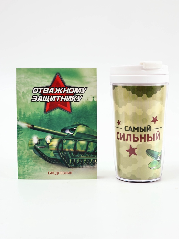 Подарочный набор: Ежедневник А6, 80 л., термостакан 250 мл «Отважному защитнику» — Характеристики