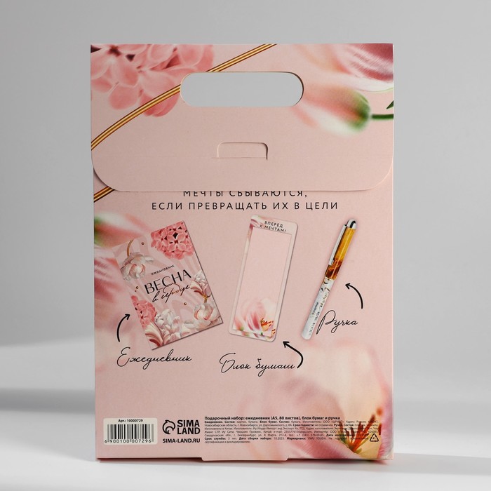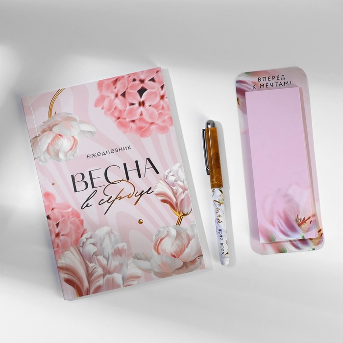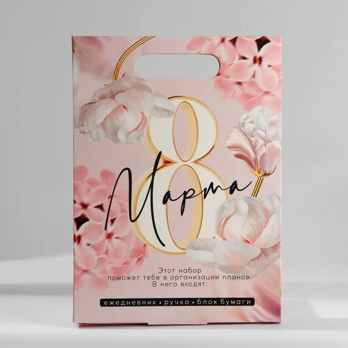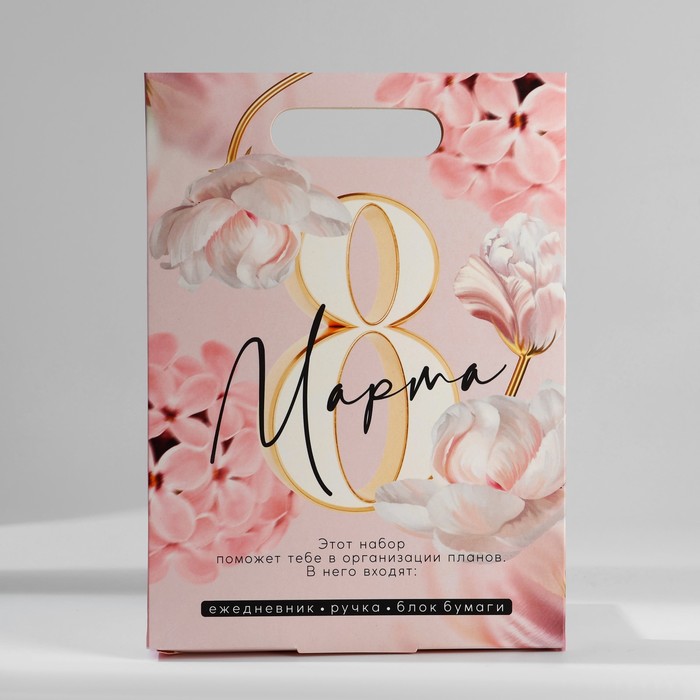 Подарочный набор ежедневник, блок бумаги и ручка «8 марта» — Характеристики