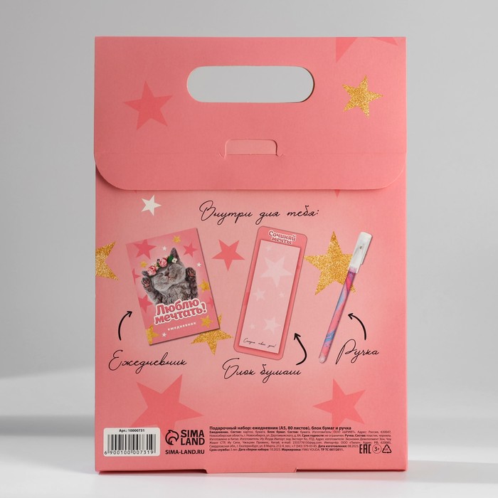 Подарочный набор, ежедневник, блок бумаги и ручка «Самая милая» — Характеристики
