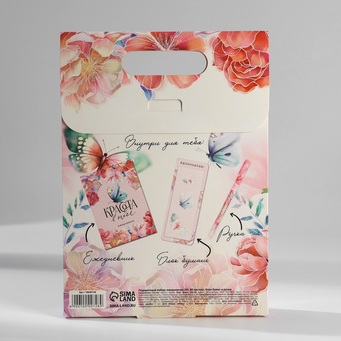 Подарочный набор, ежедневник, блок бумаги и ручка «Весна вдохновляет» — Характеристики