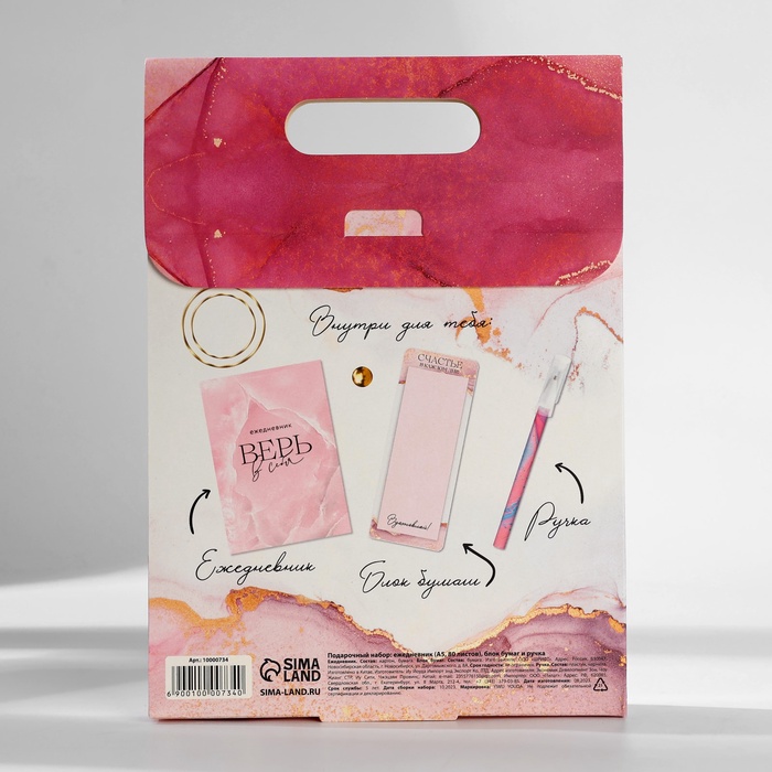 Подарочный набор, ежедневник, блок бумаги и ручка «Время мечтать» — Характеристики