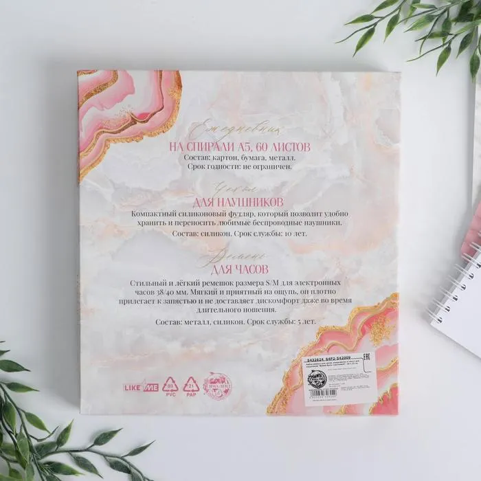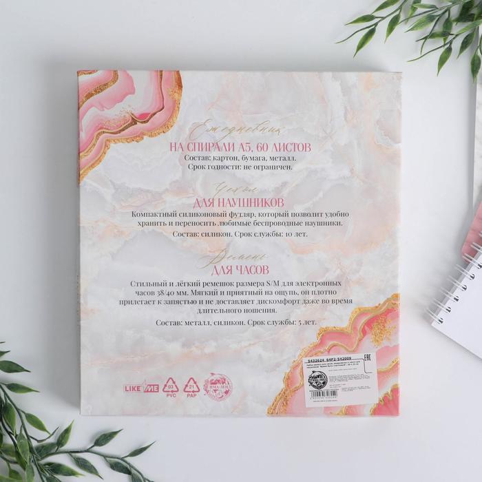 Подарочный набор: ежедневник, чехол для наушников и ремень для часов «Время быть счастливой», 20 х 22 см — Характеристики