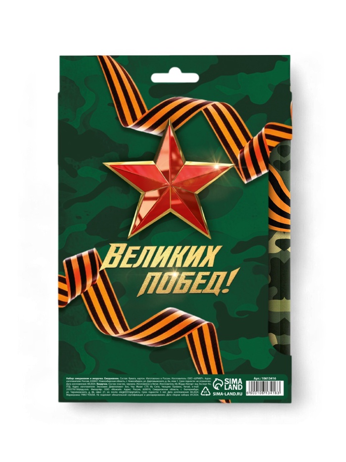 Подарочный набор, ежедневник и эко ручка «Настоящему герою. 23 февраля» — Характеристики