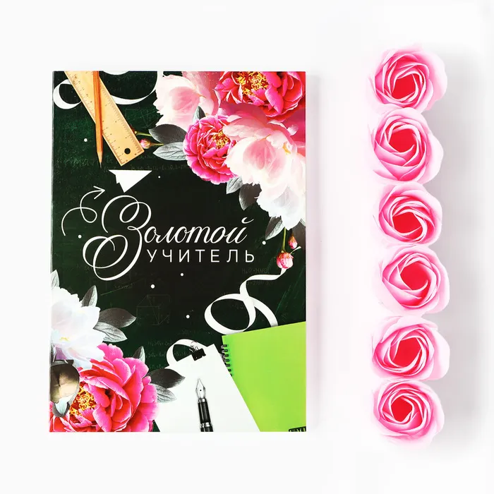 Подарочный набор ежедневник и мыльные лепестки «Учителю: Золотой учитель» — Характеристики