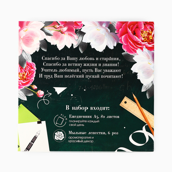 Подарочный набор ежедневник и мыльные лепестки «Учителю: Золотой учитель» — Характеристики