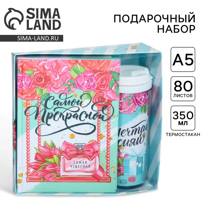 Подарочный набор, ежедневник и термостакан «Самой прекрасной» — Характеристики