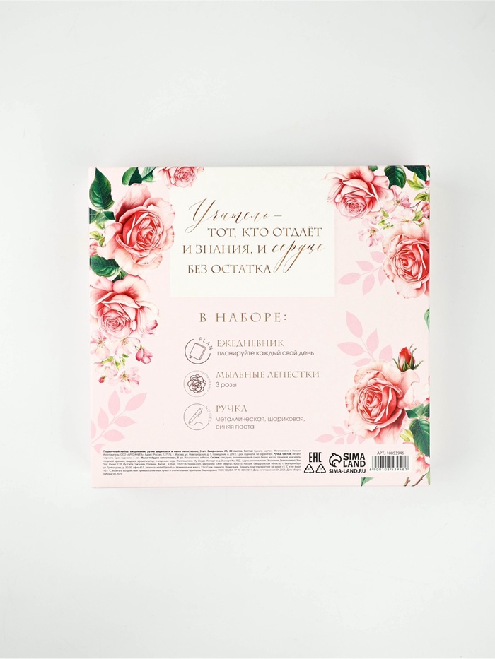 Подарочный набор ежедневник, ручка и мыльные лепестки "Ежедневник учителя" — Характеристики