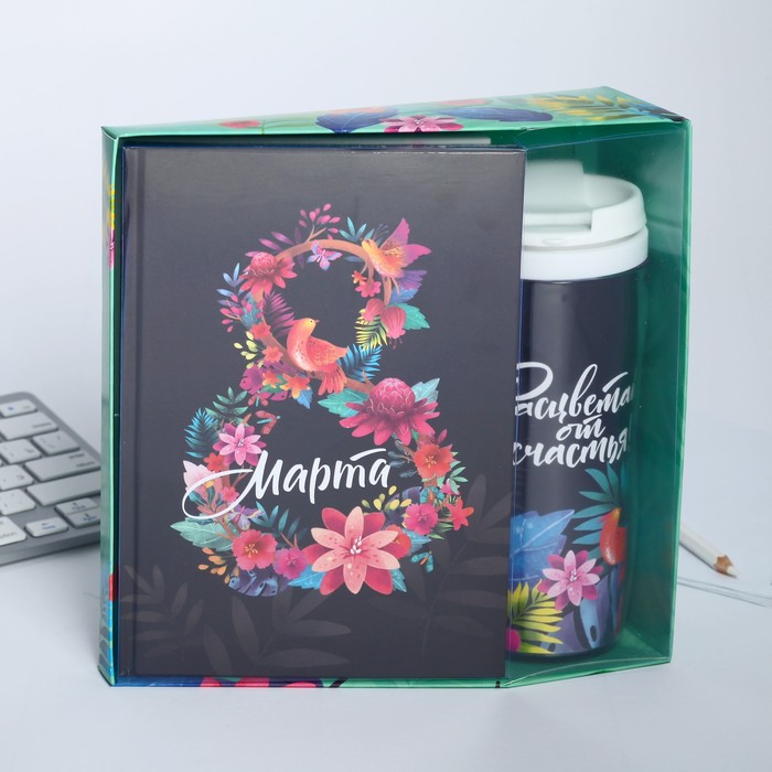 Подарочный набор, ежедневник. термостакан «8 марта из цветов» — Характеристики