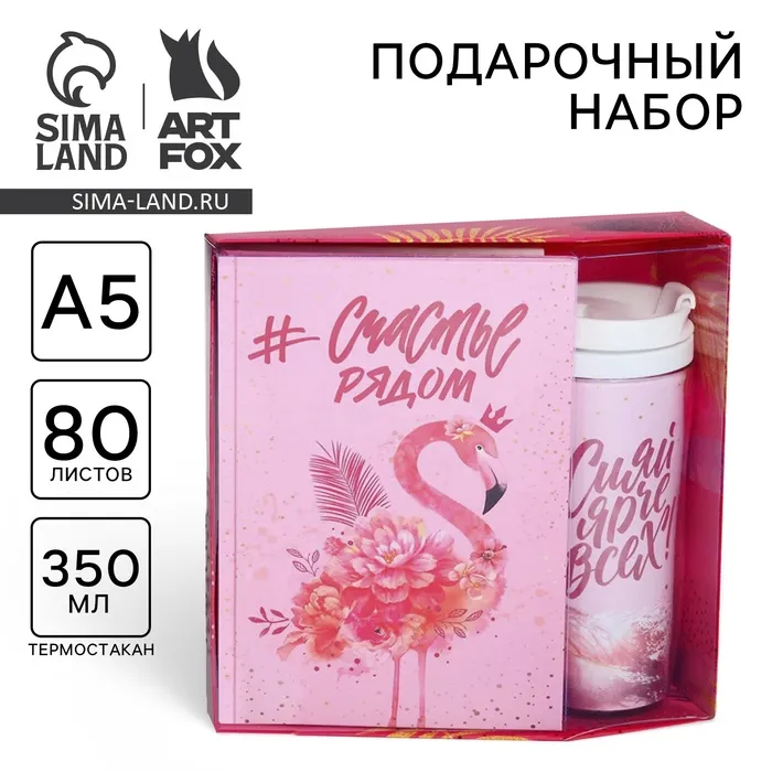 Подарочный набор, ежедневник. термостакан «#Счастье рядом» — Характеристики