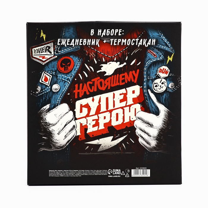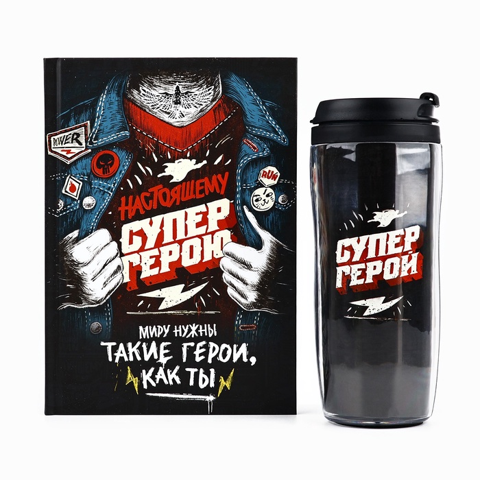 Подарочный набор, ежедневник в твердой обложке А5, 80 л., термостакан 350 мл «Супер герою» — Характеристики