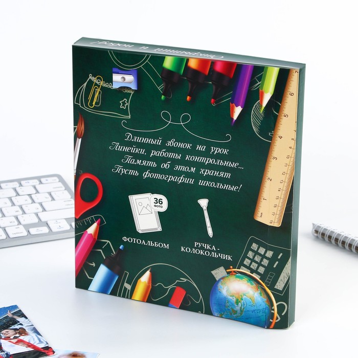 Подарочный набор, фотоальбом на 36 фото, ручка-колокольчик «Выпускной:Прощай, школа!» — Характеристики