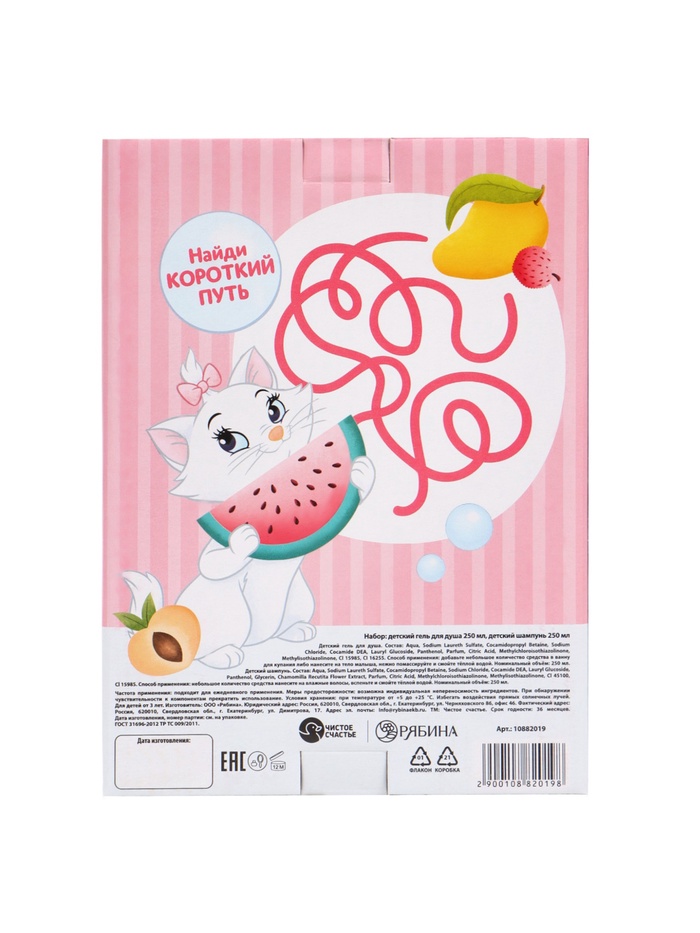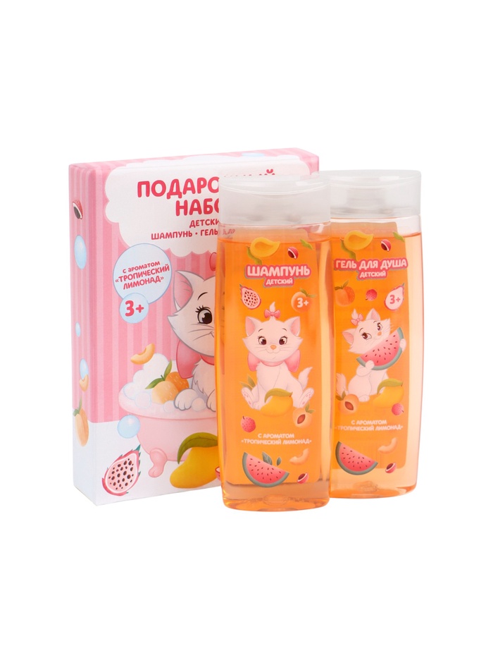 Подарочный набор «Кошечка Мари» — нежный уход с аристократичным шармом! В комплекте: шампунь 250 мл и гель для душа 250 мл. Освежающий аромат тропического лимонада — дарит ощущение летнего счастья. Флаконы украшены очаровательной Мари в бантике, создающей атмосферу доброй сказки и утончённости. Подходит для ежедневного использования с 3 лет. Пусть купание станет ритуалом доброты, уюта и музыкального настроения!