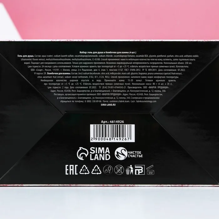 Подарочный набор, гель для душа фо флаконе мартини 250 мл и бомбочки для ванны 4х20 г, Новый Год — Характеристики