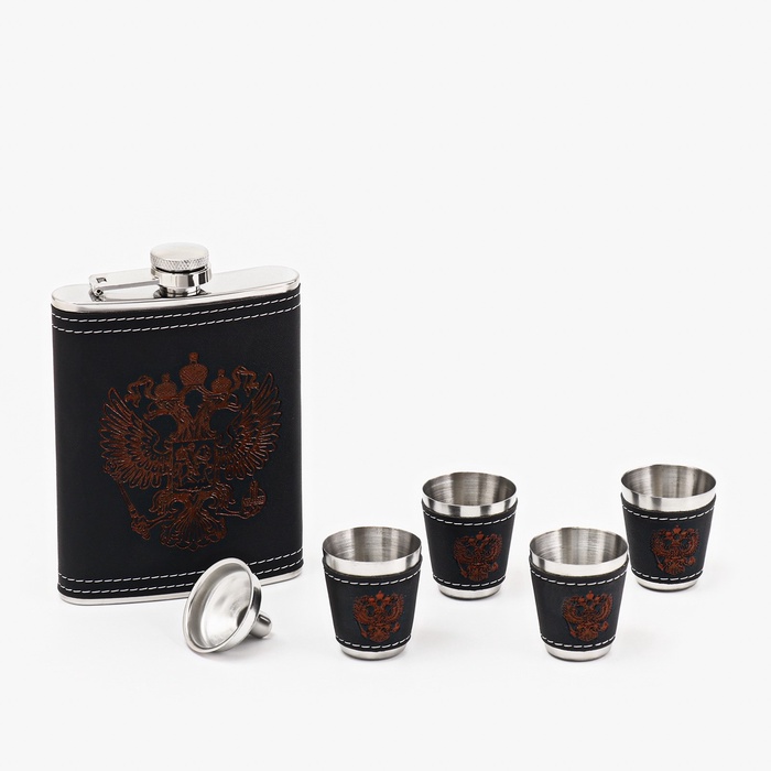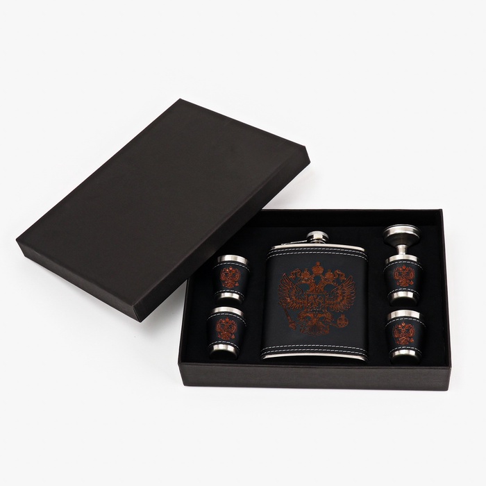 Подарочный набор «Герб РФ»: фляжка 240 мл, 4 стопки, воронка — Характеристики