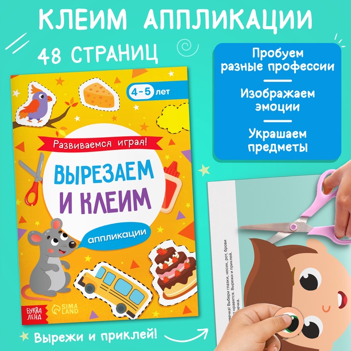- Весёлые аппликации. Тренируем мелкую моторику и учимся работать с ножницами и клеем.