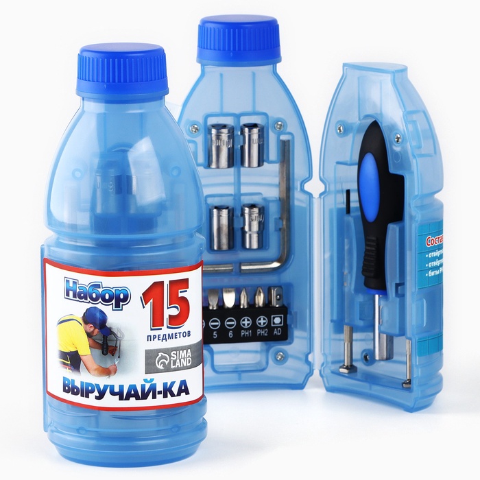 Подарочный набор инструментов в бутылке «Выручай Ка», 15 предметов — Характеристики