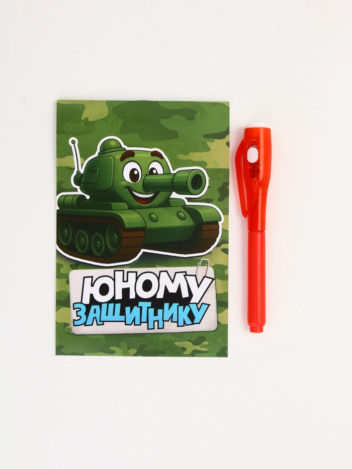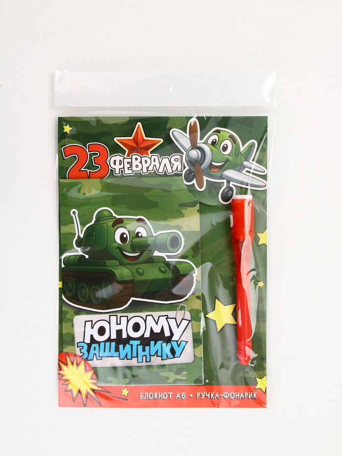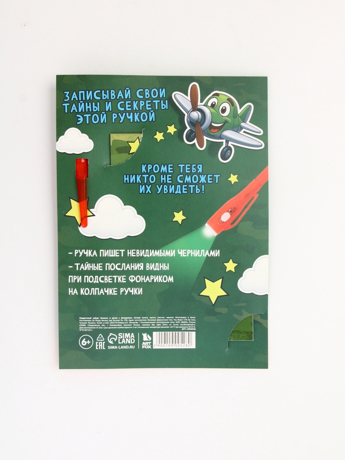 Подарочный набор «Юному защитнику», ручка с фонариком и невидимыми чернилами, блокнот А6, 16 л — Характеристики