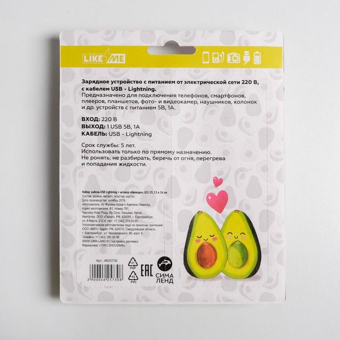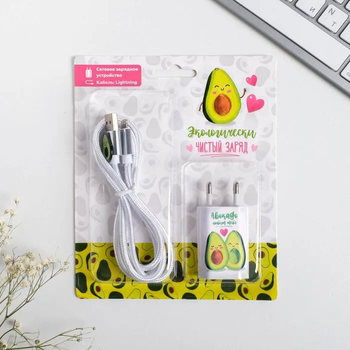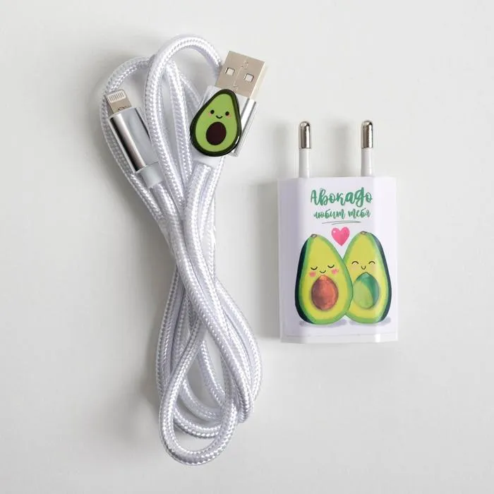 Подарочный набор: кабель USB - Lightning и штекер «Авокадо», 1 м