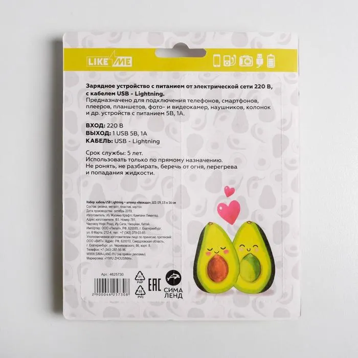 Подарочный набор: кабель USB - Lightning и штекер «Авокадо», 1 м — Характеристики