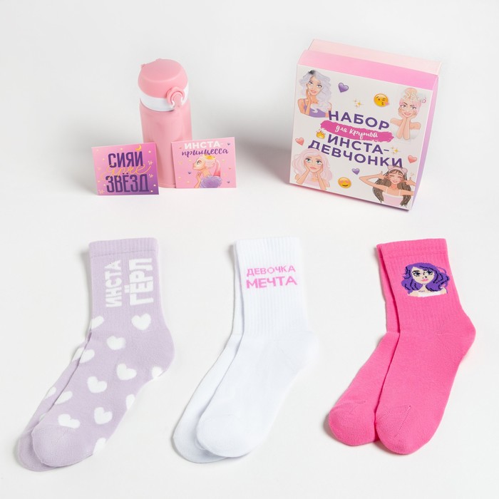 Подарочный набор KAFTAN «Инста-гёрл»: термос и носки 3 пары, размер 33-35 (20-22 см) — Характеристики