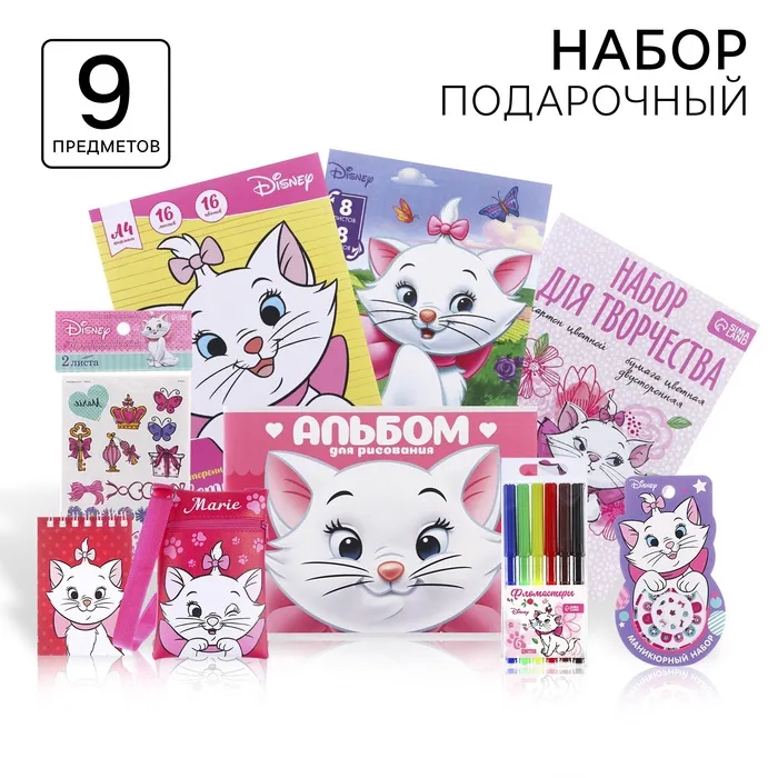 Подарочный набор канцелярский для девочки, 9 предметов, Коты аристократы — Характеристики