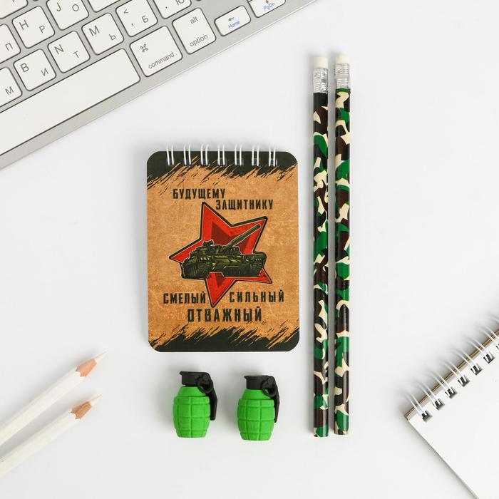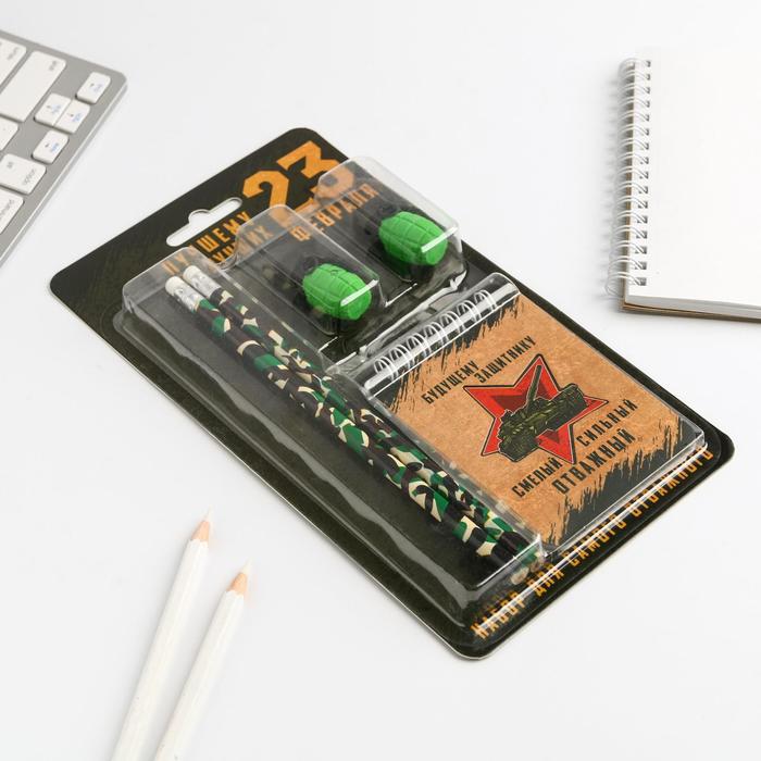 Подарочный набор канцелярский, ластики 2 шт., блокнот, карандаши «23 февраля» — Характеристики