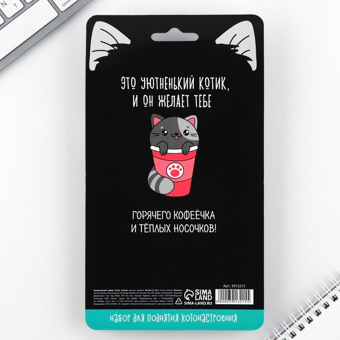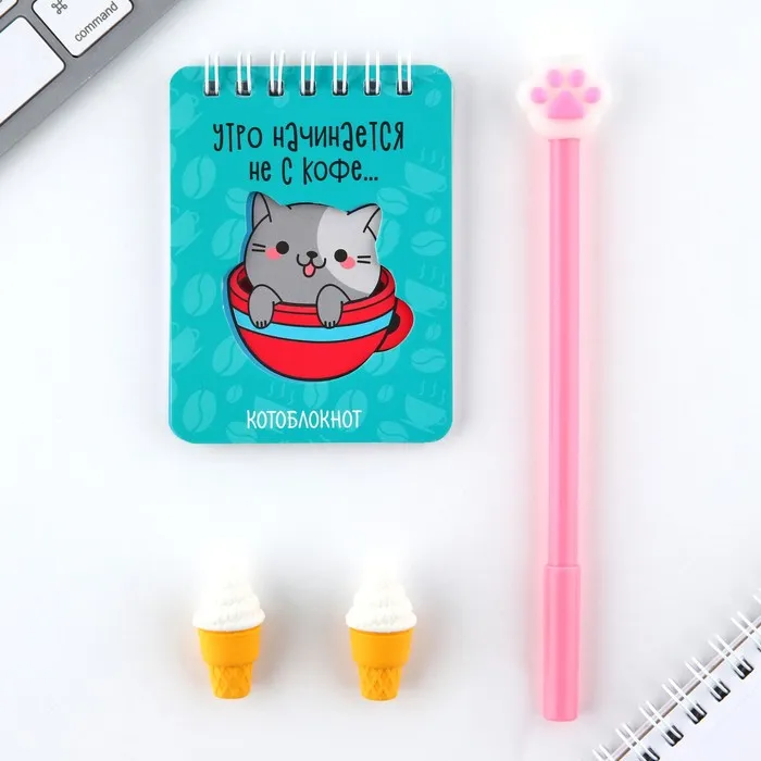 Подарочный набор канцелярский, ручка, ластики 2 шт., блокнот «У меня лапки» — Характеристики