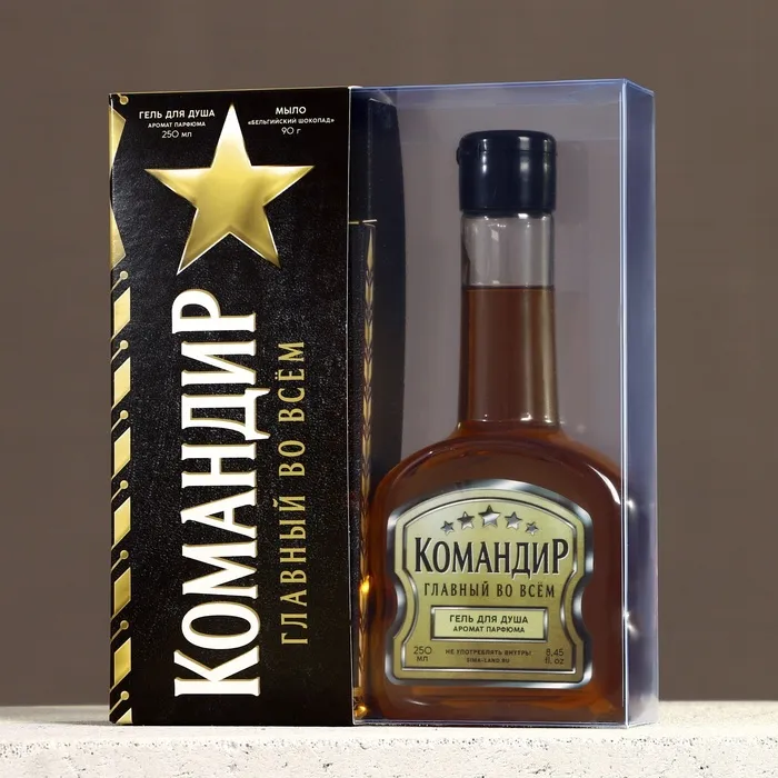 Подарочный набор «Командир», гель для душа коньяк 250 мл и мыло для рук 90 г, Чистое счастье — Характеристики