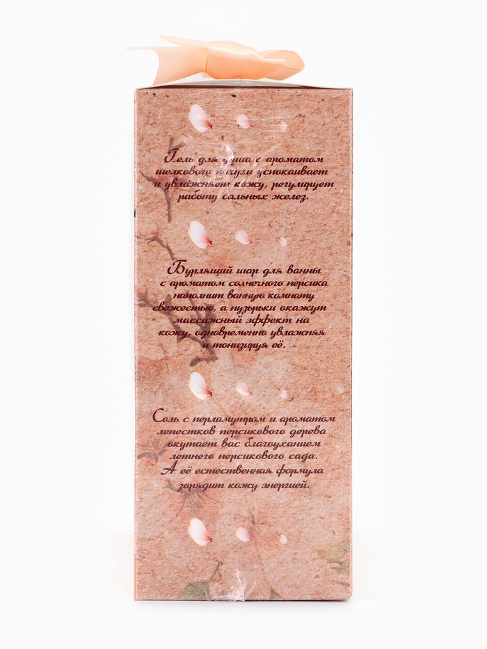 Погрузитесь в атмосферу гармонии и ароматного отдыха с набором "Персик и пачули", который сочетает нежное очищение, расслабление и благоухание летнего сада. Идеальный подарок для себя или близких.