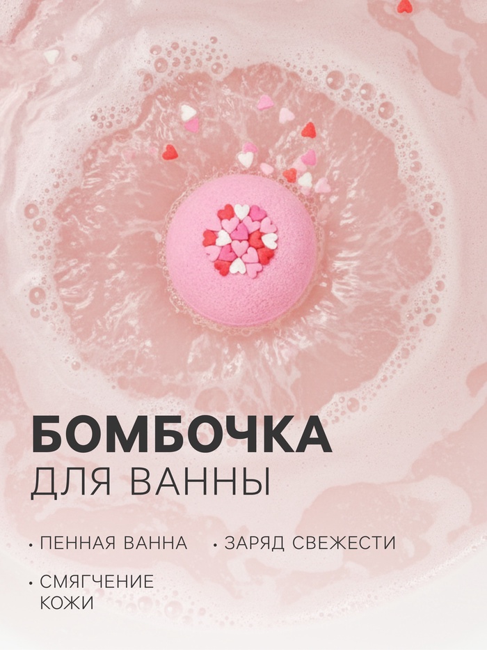 С кондитерской посыпкой, бурлит и шипит, создавая клубничное настроение. Опустите в ванну (36–38 °C), дождитесь полного растворения и принимайте 15–20 минут.