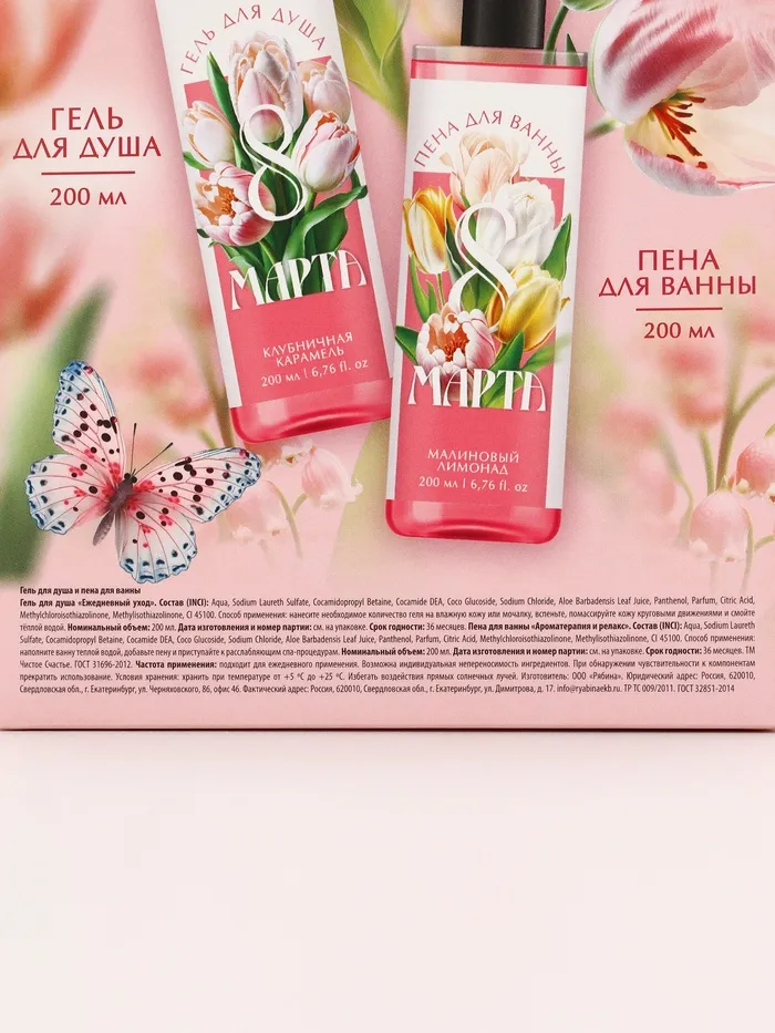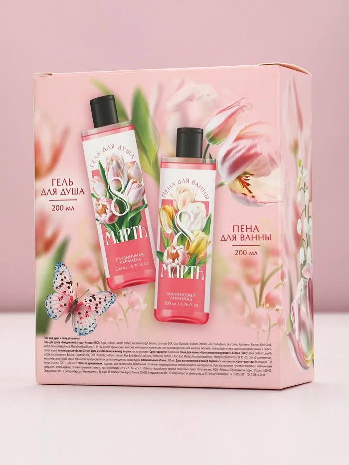 Подарочный набор косметики «8 марта: Самой прекрасной», гель для душа 200 мл и пена для ванны 200 мл, Чистое счастье — Характеристики