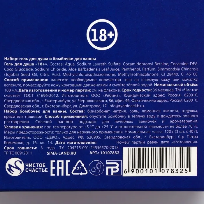 Подарочный набор косметики Bad girl: гель для душа 100 мл и бомбочки для ванны 3×40 г, 18+, Чистое счастье — Характеристики