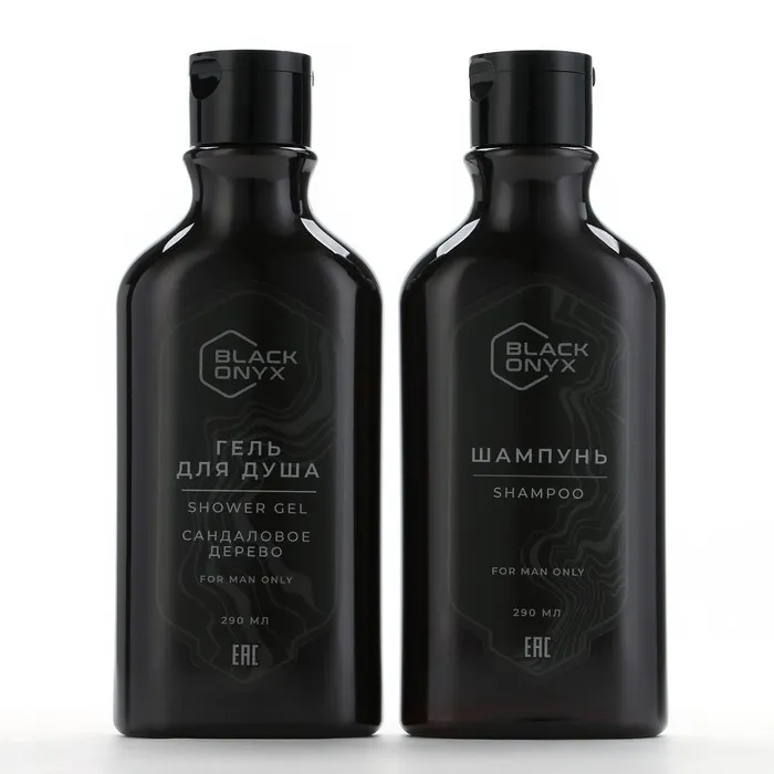 Подарочный набор косметики BLACK ONYX, гель для душа и шампунь для волос, 2×290 мл, аромат сандалового дерева, HARD LINE — Характеристики